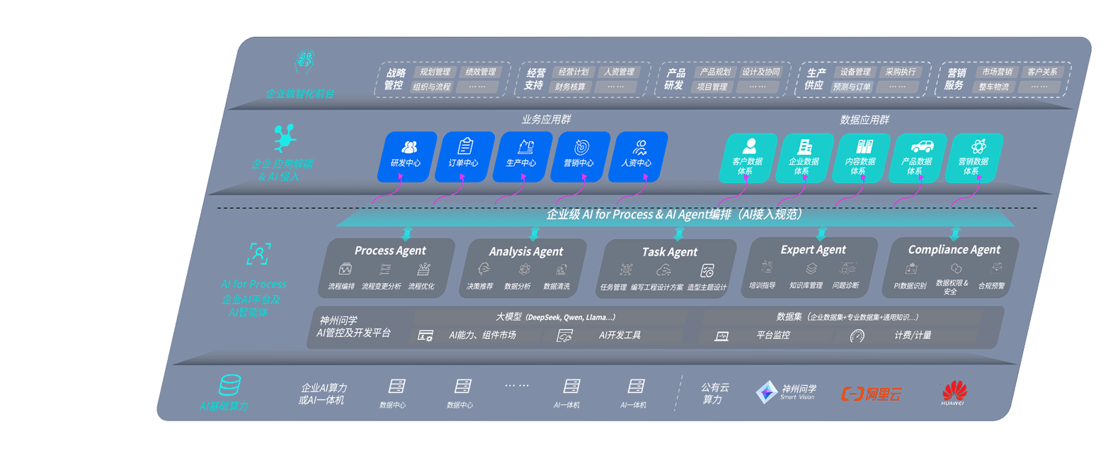 bwin必赢问学智车解决方案是一套基于AI技术的汽车行业智能化系统,,,覆盖从底层算力到顶层AI应用的全栈方案。。。方案由算力层、、模型层和应用层组成:算力层,,,,方案支持多种一体机配置,,,,具备云端灵活部署、、、、多云适配以及动态优化计算资源的能力;模型层,,bwin必赢问学平台版提供了企业级AI应用一站式构建与管理平台,,,,支持基于后训练强化技术的汽车企业专属模型的训练、、、评测和运营;应用层,,,bwin必赢问学DeepSeek版提供包括超级员工、、、、智能招采、、、、智能营销、、、智能客服、、、AI for BI等一系列解决方案,,可助力汽车行业实现数字化转型,,,让管理更智能、、响应更敏捷。。。